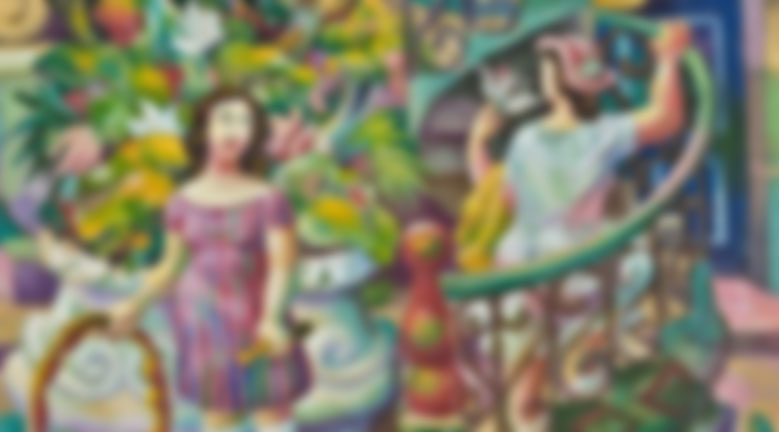 A key figure in 20th-century Cuban modernism, Mario Carreño developed a singular visual language, combining traditional themes with formal innovation. In this oil on canvas, he portrays a layered courtyard scene: four women in a colonial house framed by tropical vegetation. The vibrant palette and dynamic composition illustrate Carreño’s mature approach, where figuration and modernist structure coexist.